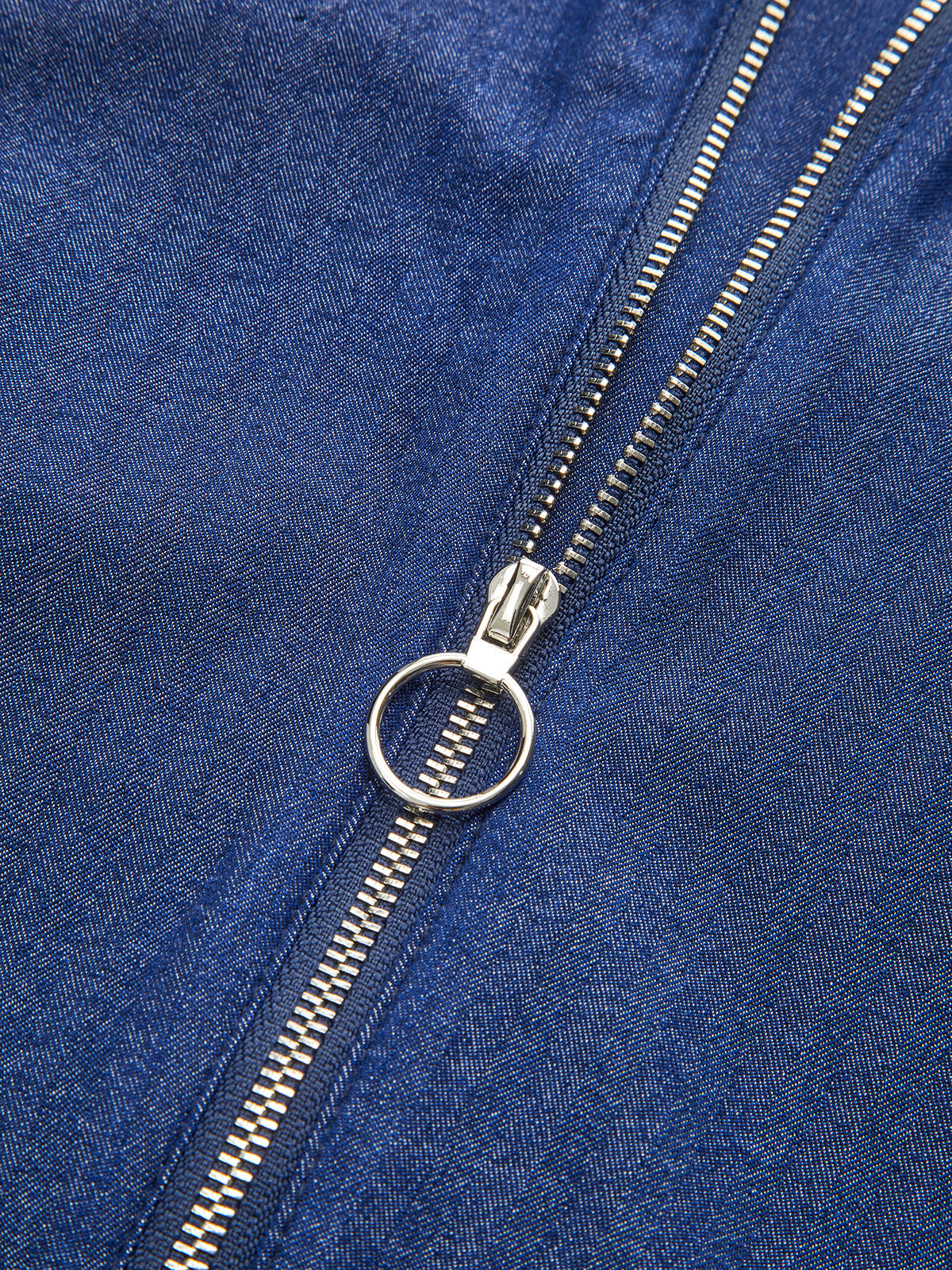 Denim Halter Neck Back Zipper Top