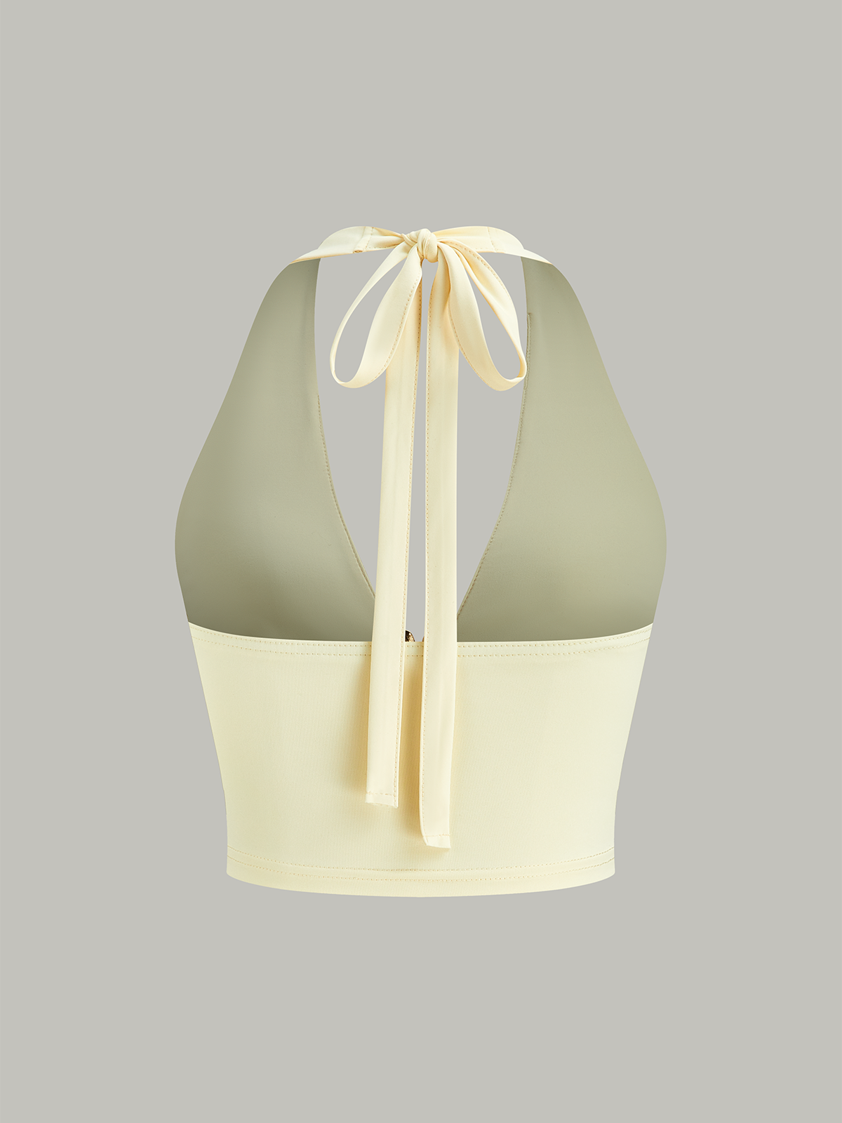 Halter Neck Crop Top and Mesh Paneled Skirt Set
