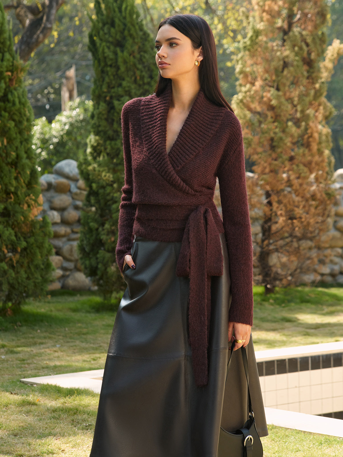 Wool-Blend Lace Up Knit Top