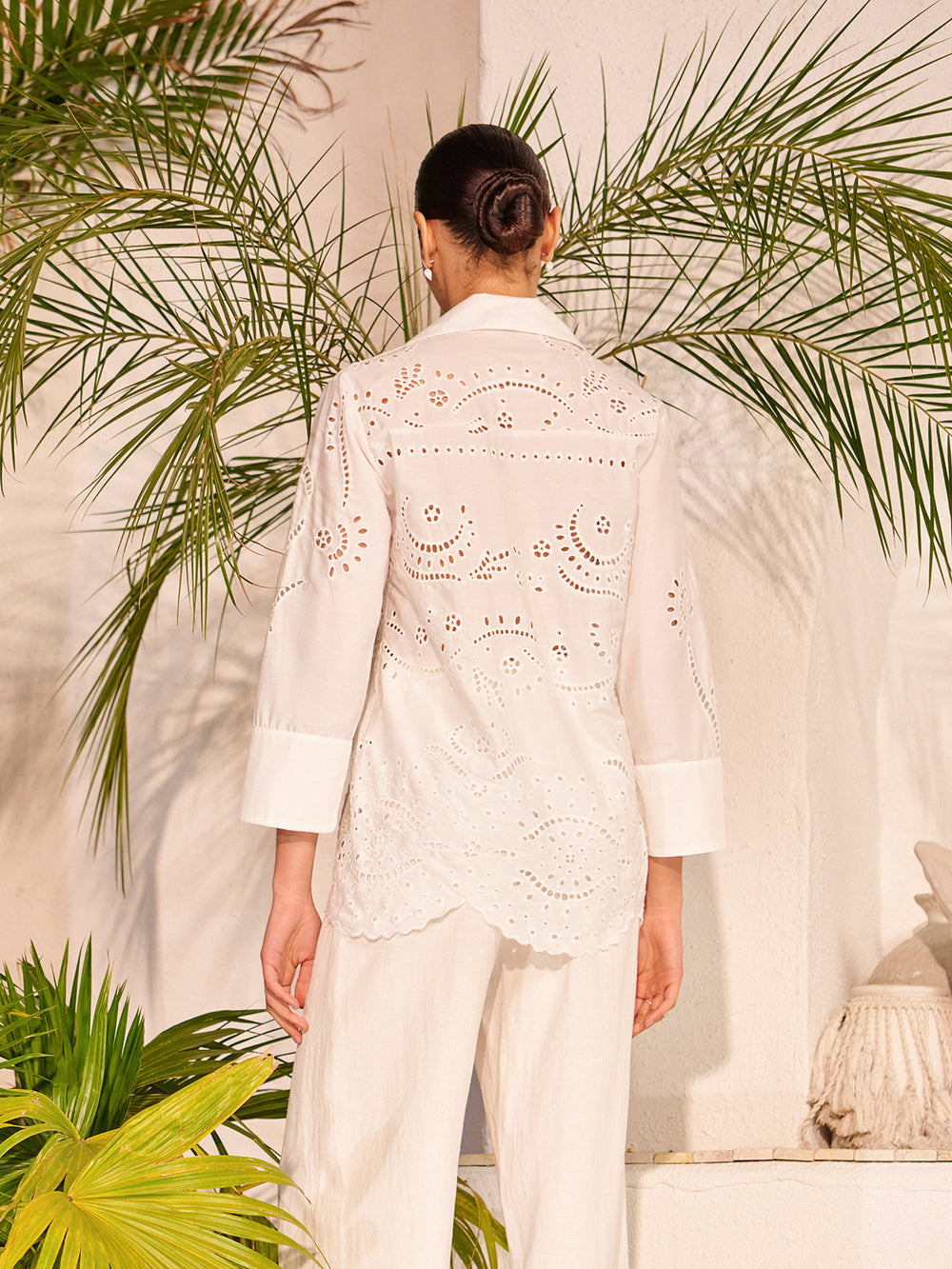 Cotton Eyelet Embroidered Semi-Sheer Top