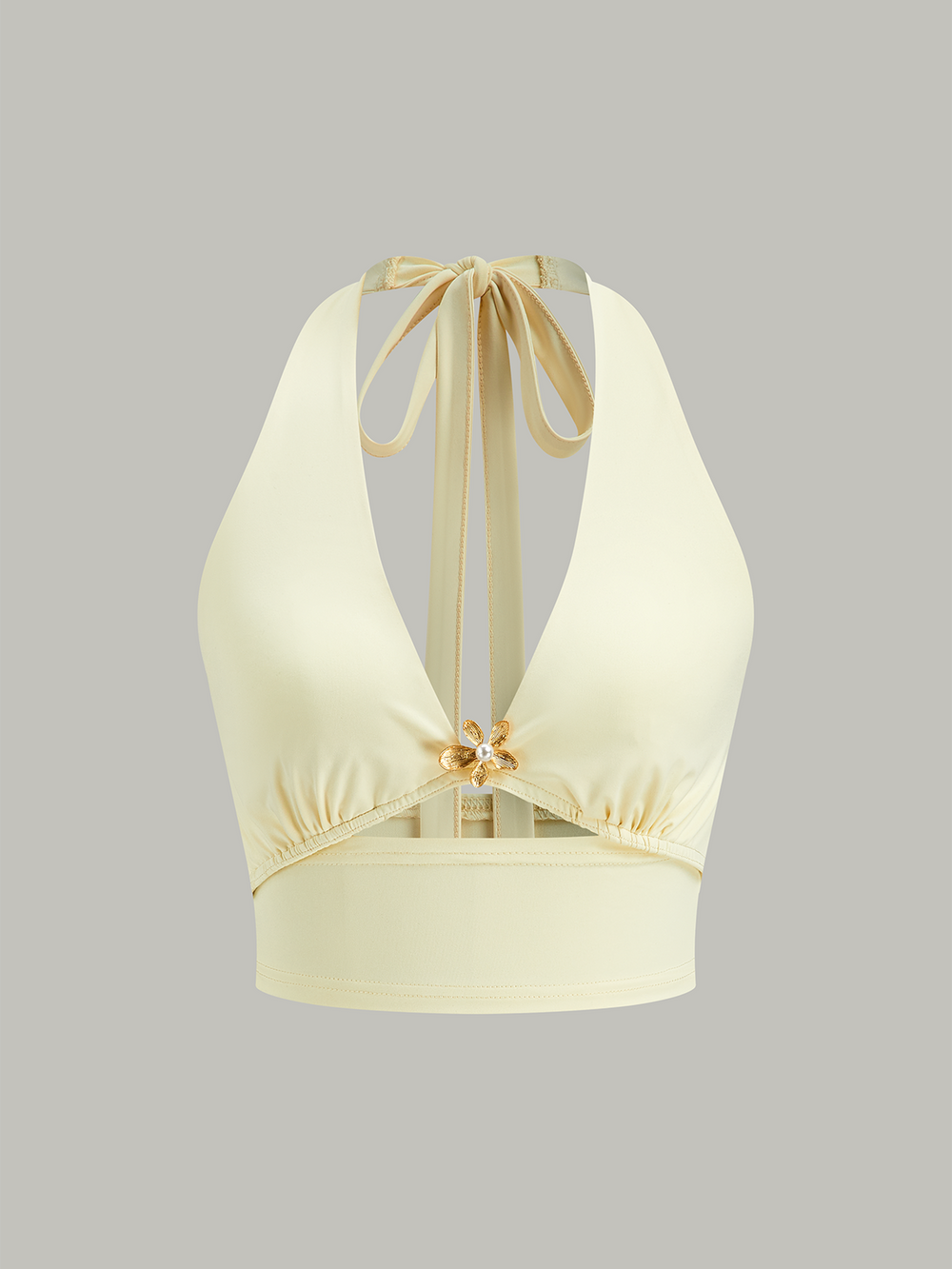 Halter Neck Peplum Hem Top with 3D Floral Details