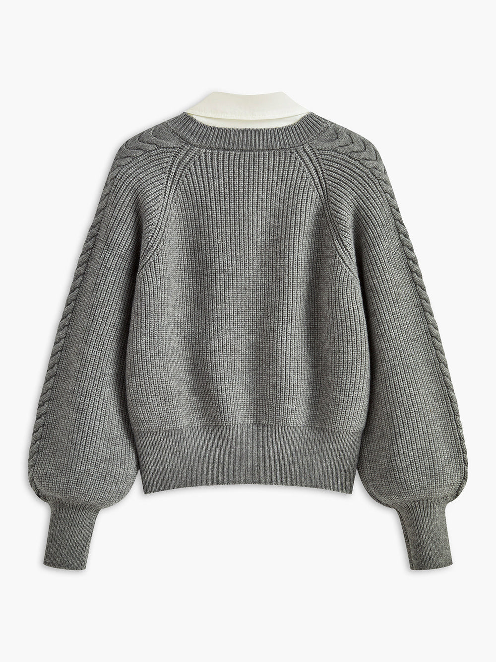 Leg-Of Mutton Sleeve Wave Trim Knit Top