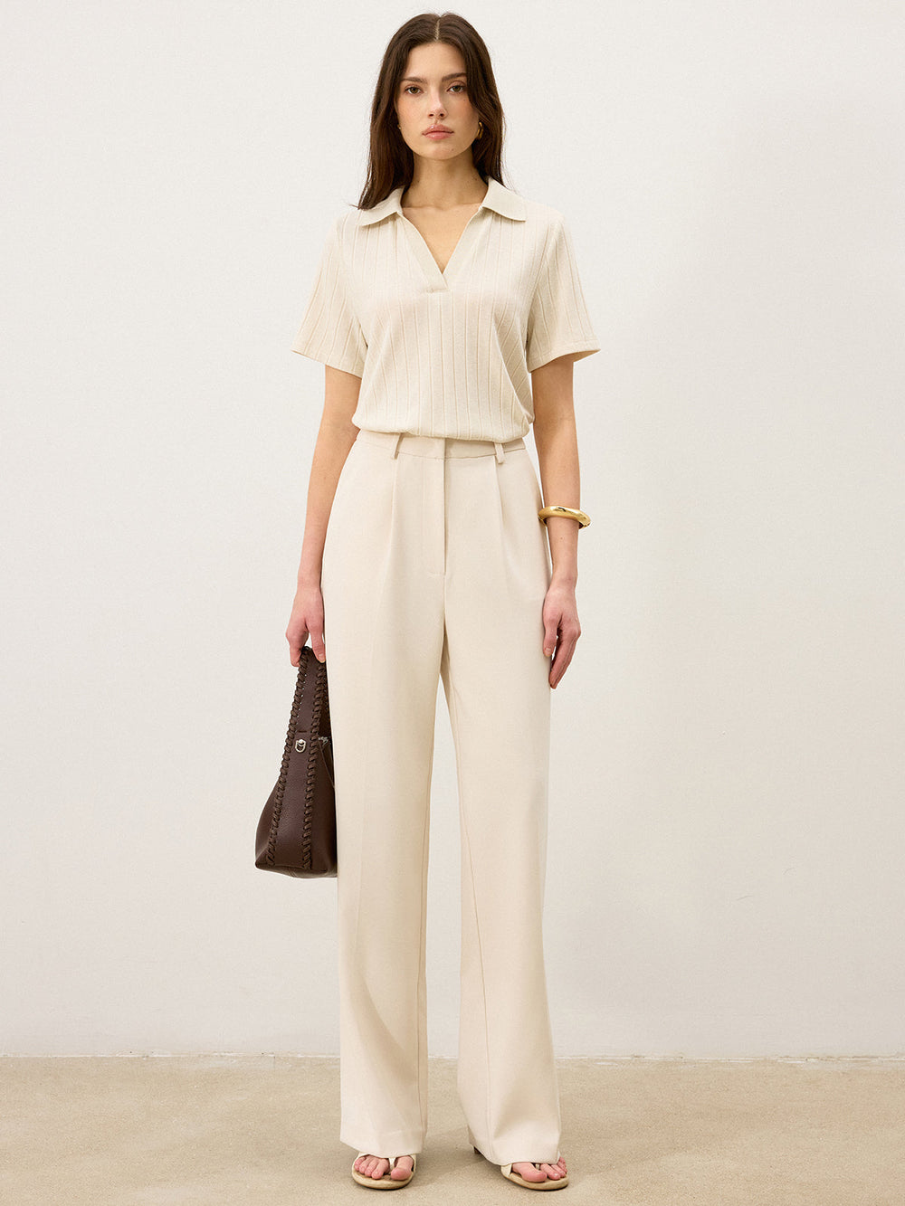 Ribbed Polo-Neck Knit Top