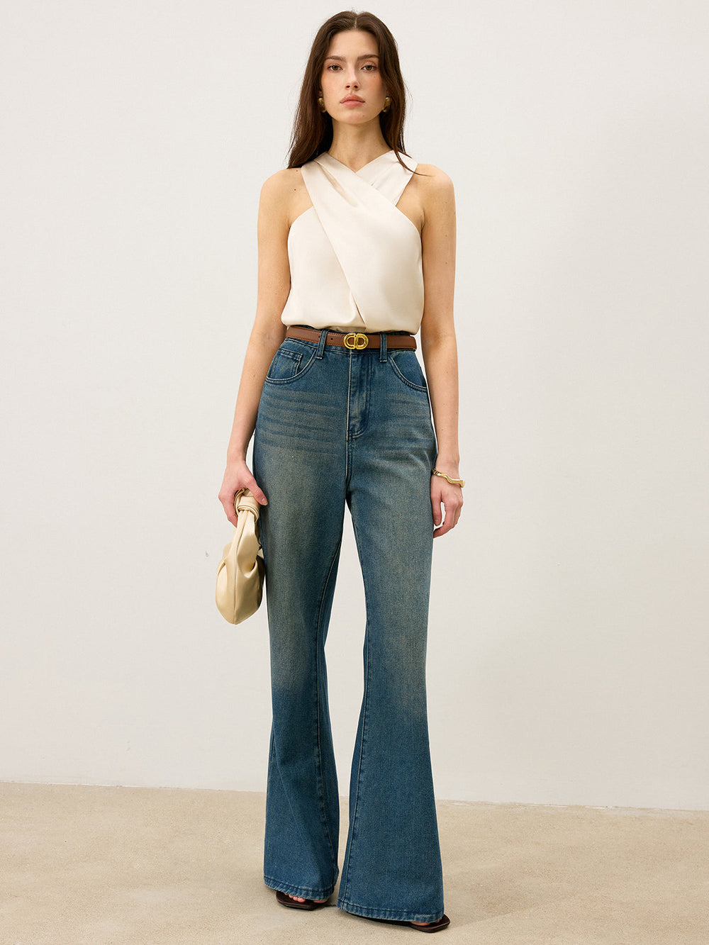 Satin Cross-Over Collar Tank Top