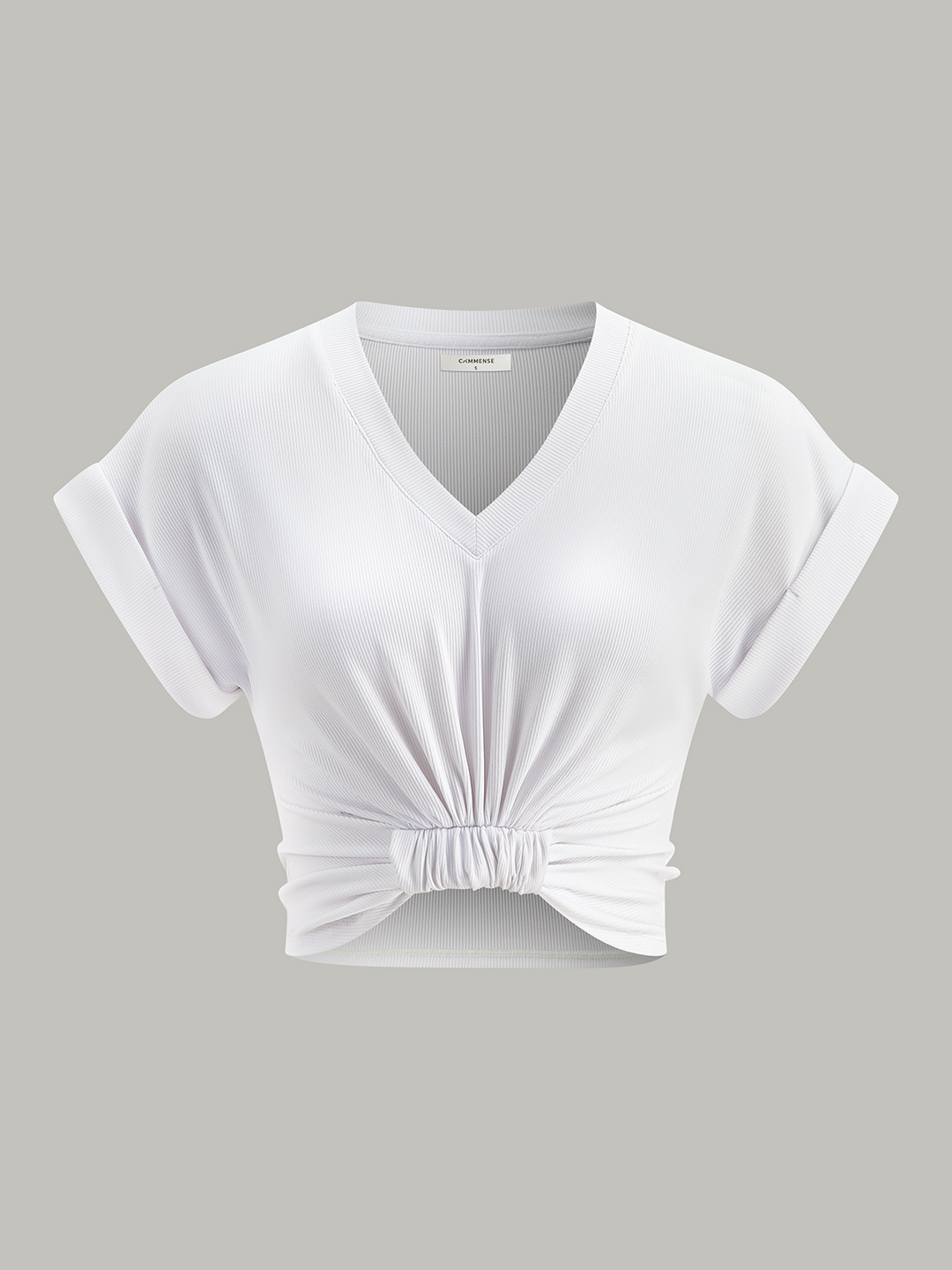 Ribbed V-Neck Knotted Crop Top
