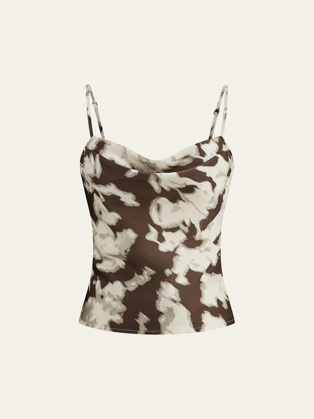 Satin Abstract Print Cowl Neck Cami Top