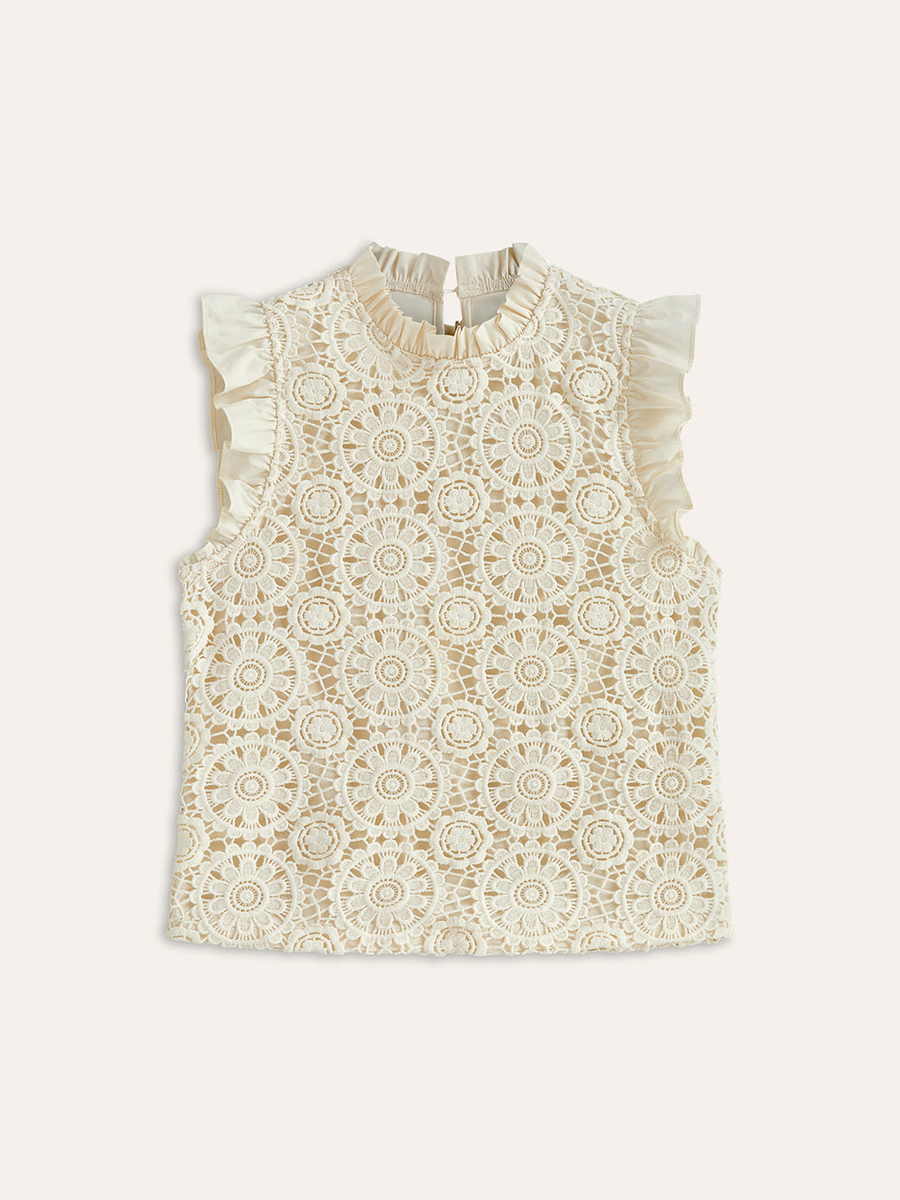 Sleeveless Crochet Lace Top With Ruffle Trim