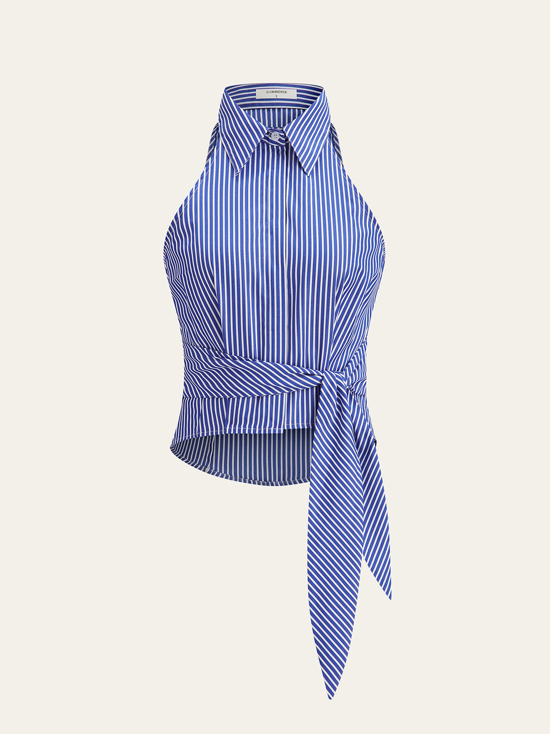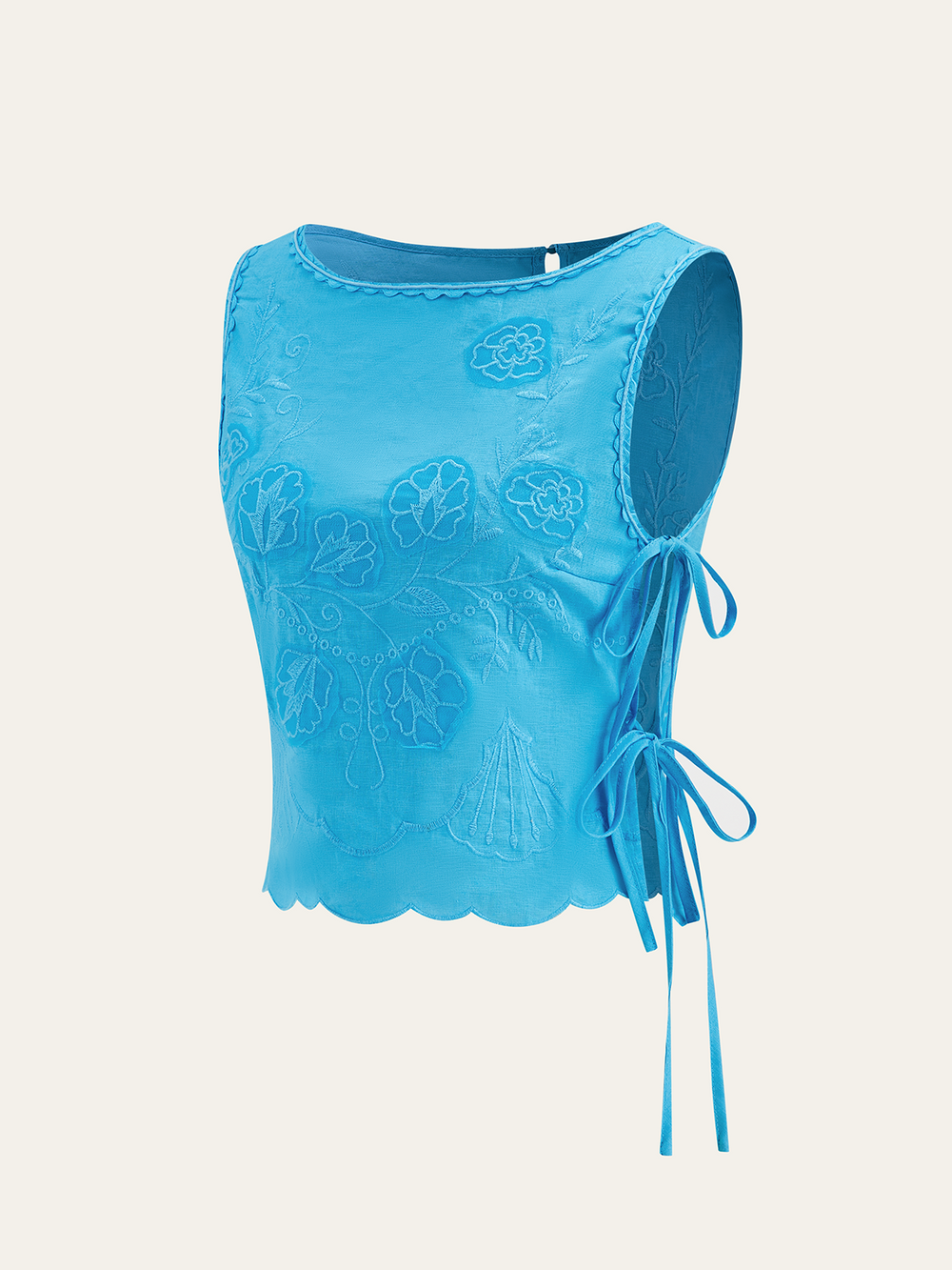 Tiered Ruffle Chiffon Halter Top with 3D Flower