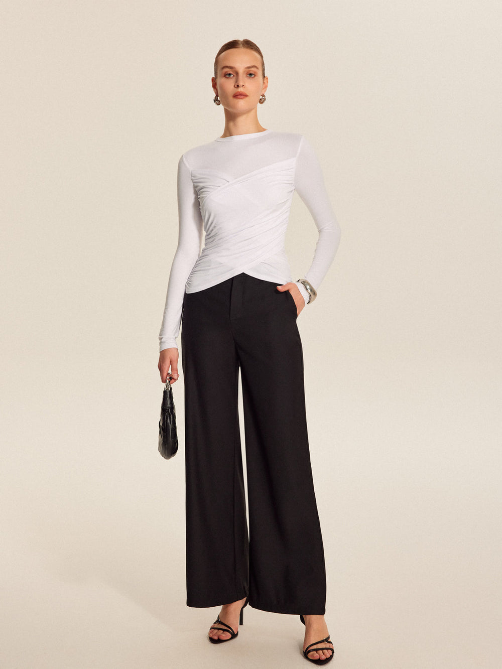 Wool-Blend Ribbed Knit Top With Tied Shawl Detail