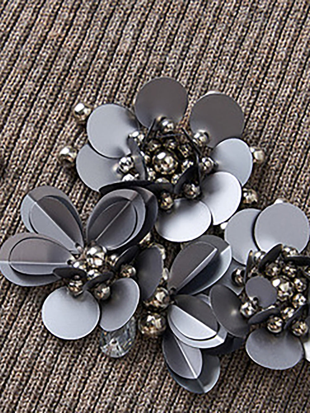 Wool-Blend Mock Neck Sheer-Detail Knit Top