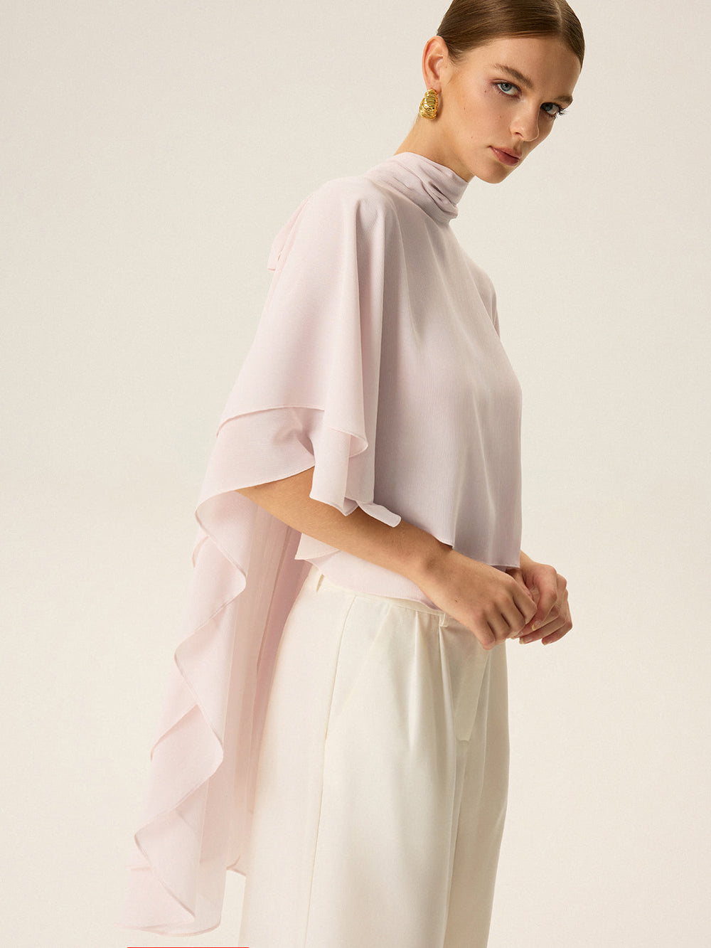 Semi-Sheer Chiffon High-Neck Tiered Cape Top