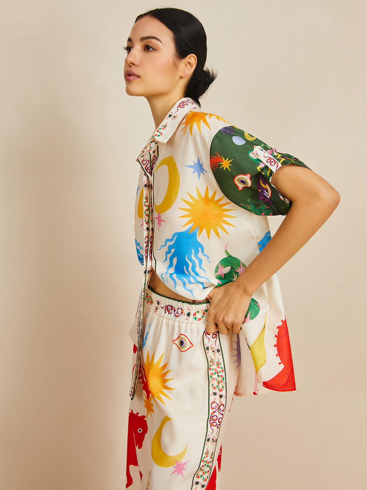 Casual Shift Linen Blend Style Print Pants Set