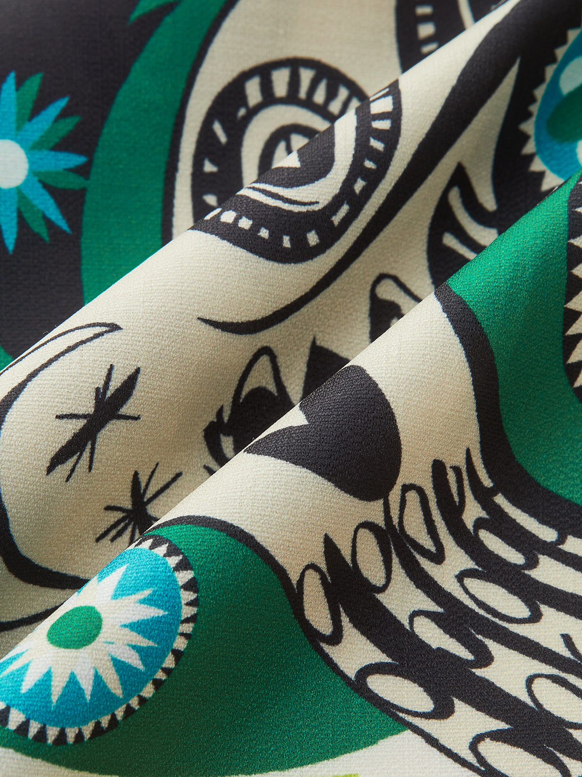 Graphic Print Crop Top With Wide-Leg Pants Set