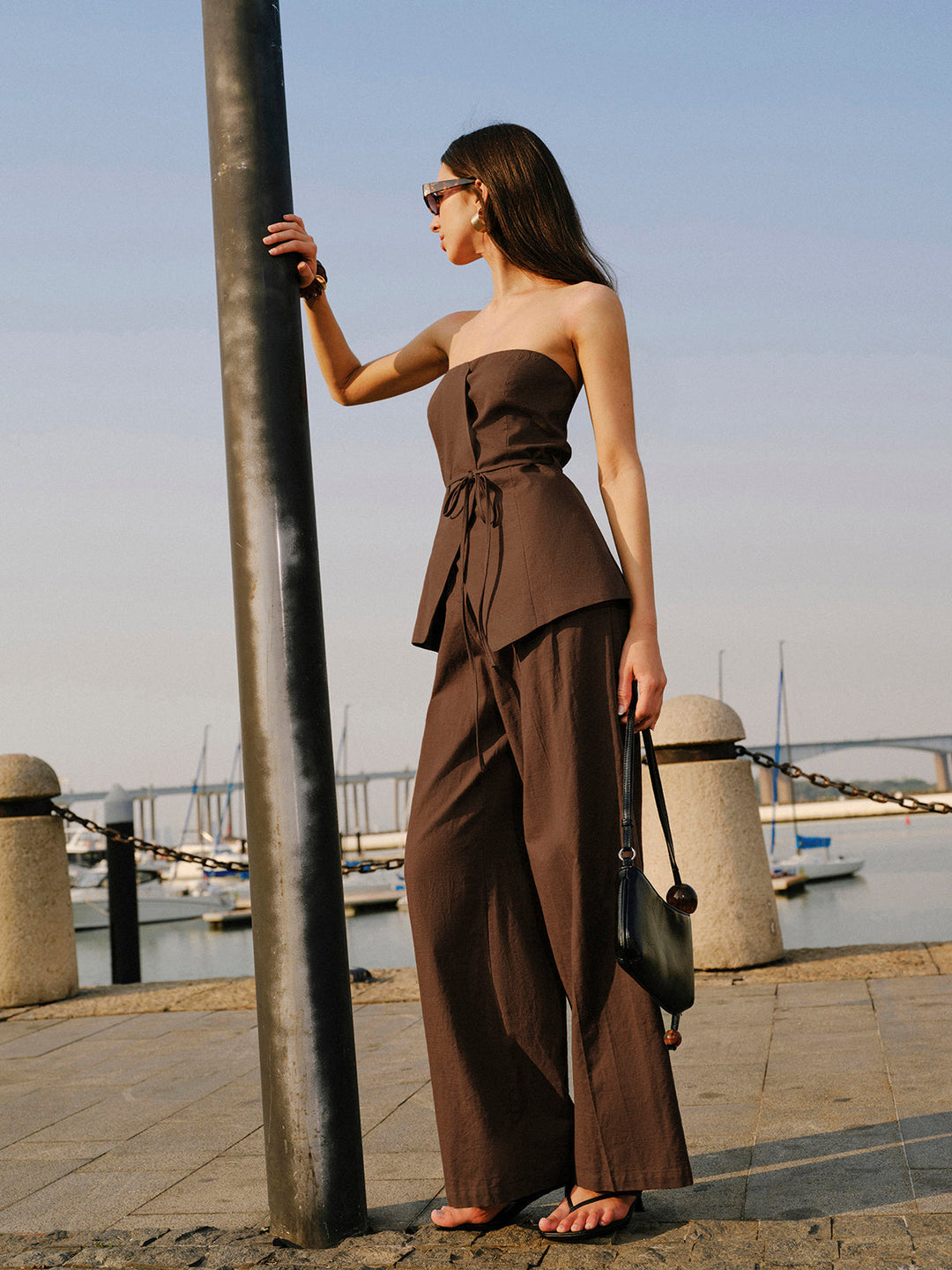Cotton & Linen Tie-Back Vest With Pockets Pants Set