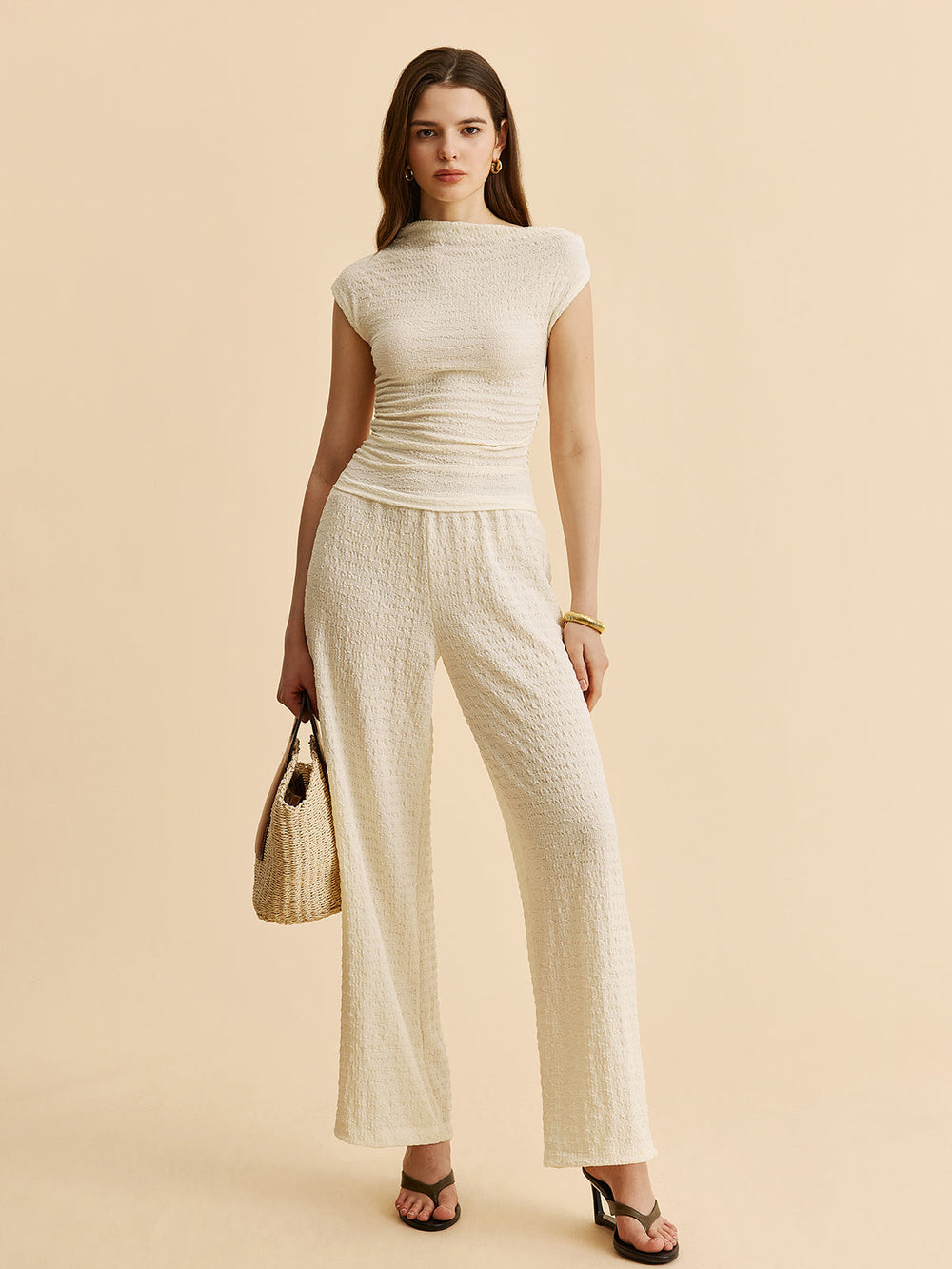 Textured Top With Wide-Leg Pants Set