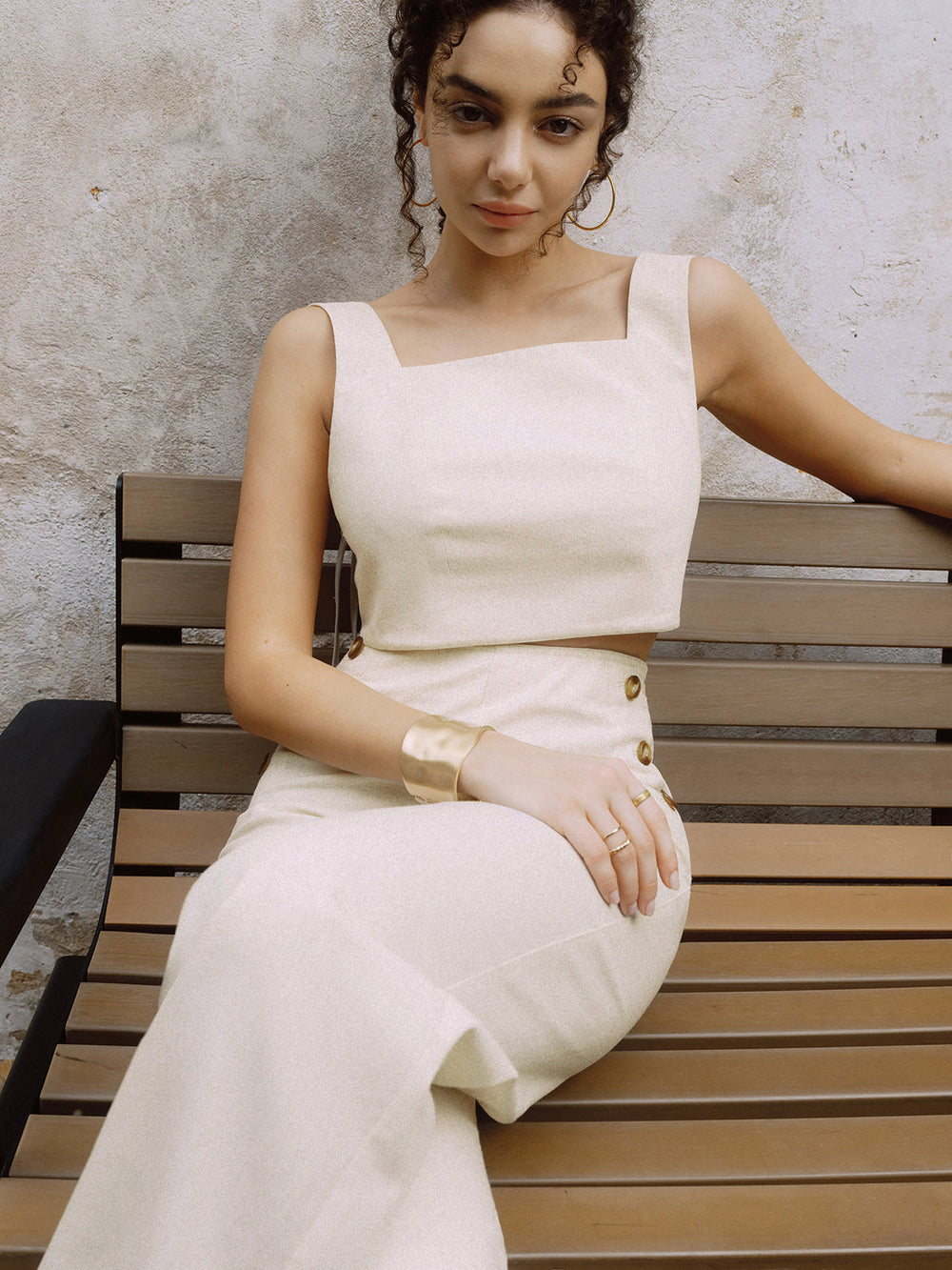 Asymmetric Halter Crop Top With Wide Leg Pants Set
