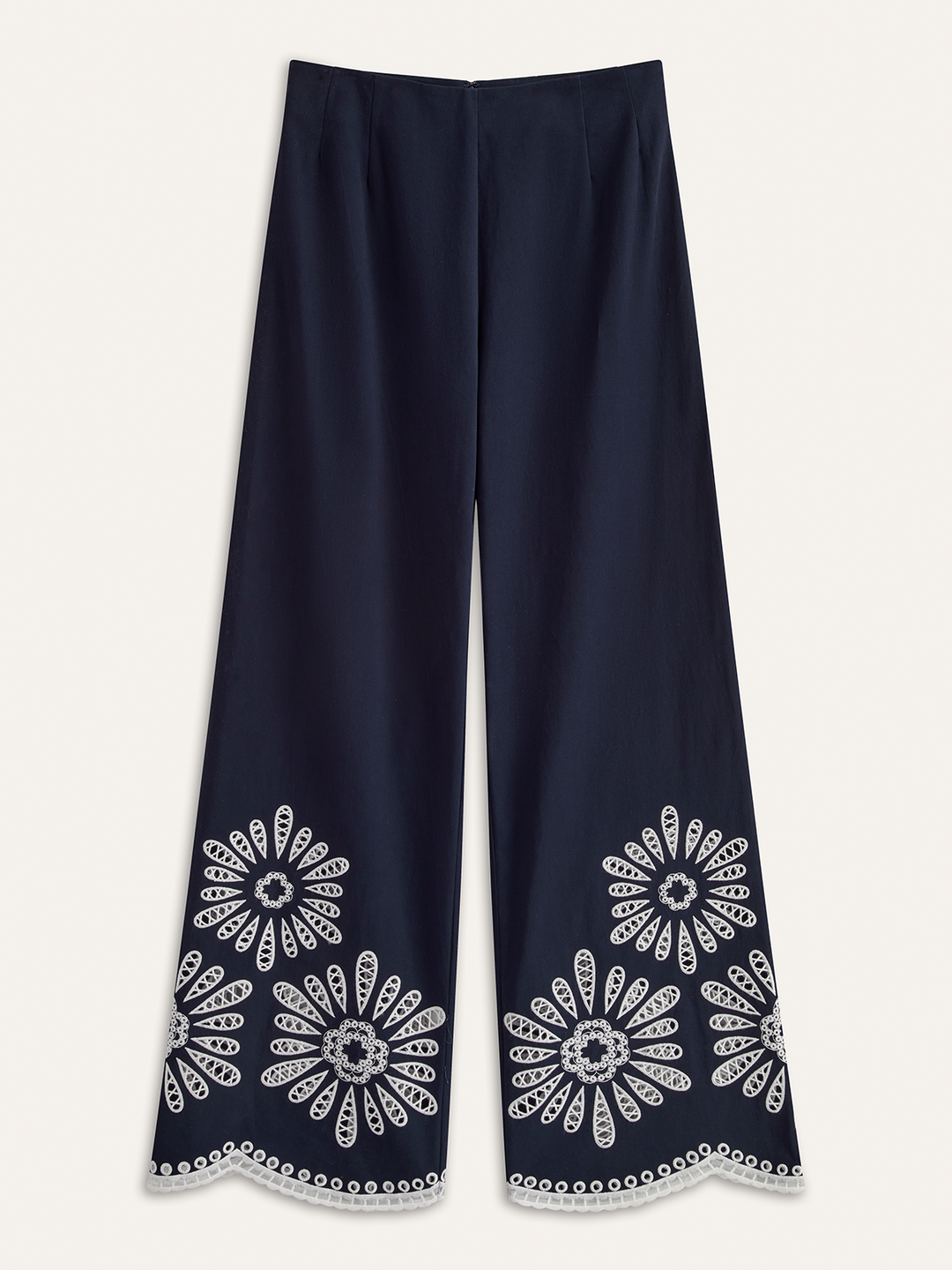 Embroidery Cut-Out Wide-Leg Pants