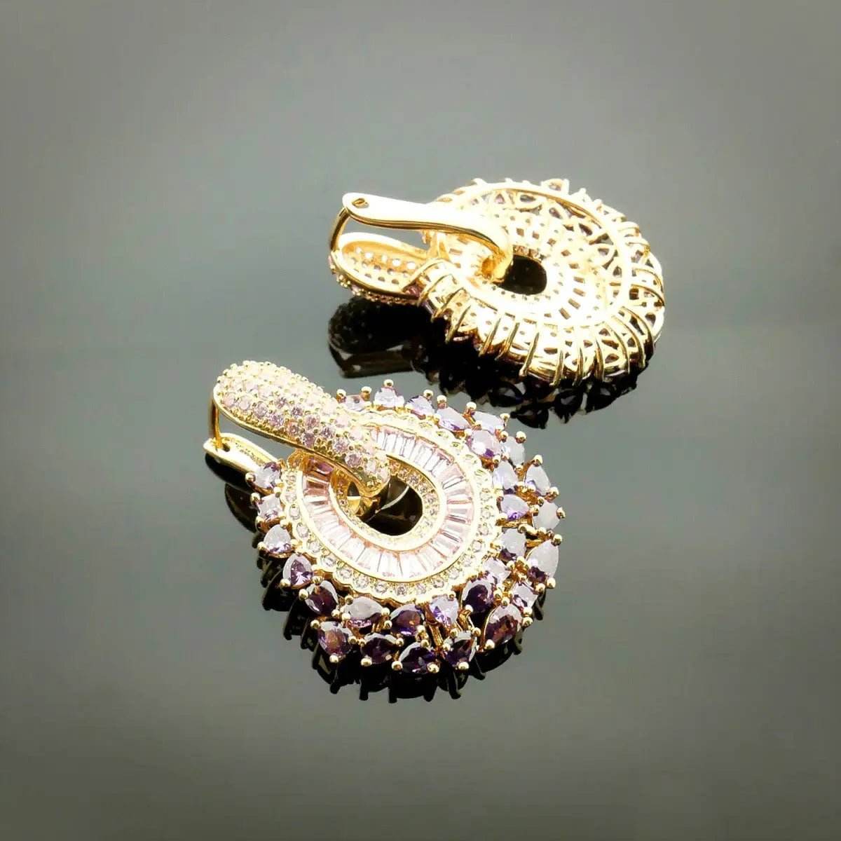 These rose gold-tone earrings with pink zirconia are a sophisticated choice for women who appreciate elegant and feminine jewelry. The sparkling pink zirconia are beautifully accented by a warm rose gold-tone setting, giving these earrings a stylish and timeless look.