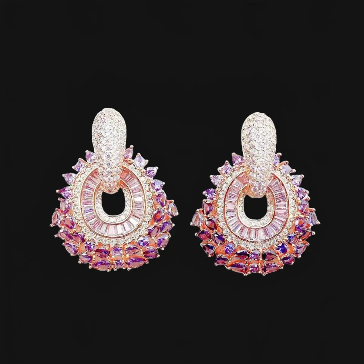 Rose gold-colored earrings with pink zirconias
