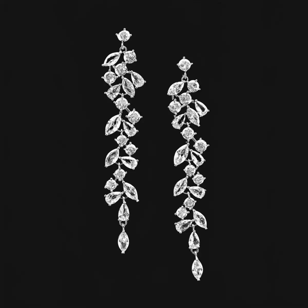 These striking statement earrings exude elegance and refinement. The sparkling silver leaf zirconia combined with a refined design make these earrings perfect for women who appreciate luxury and a touch of color. The high-quality finish in a silver-tone setting makes them suitable for any occasion.