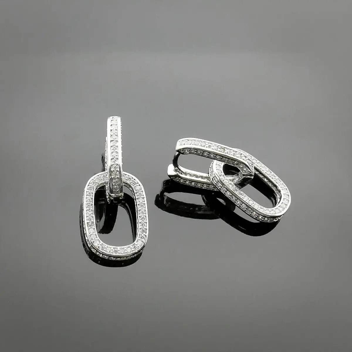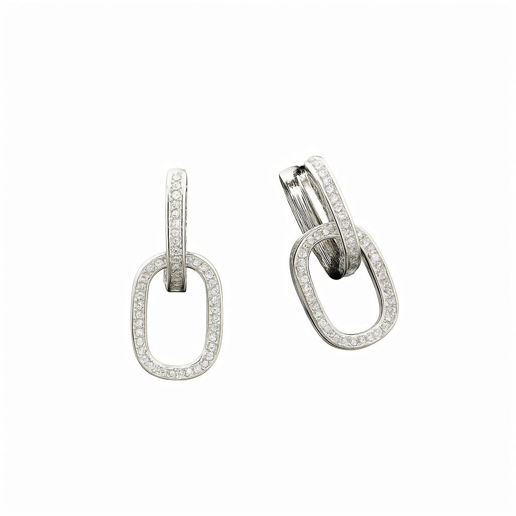 These silver-tone link earrings with cubic zirconia are a sophisticated choice for women who appreciate modern and eye-catching jewelry. The unique link design combined with sparkling cubic zirconia gives these earrings a stylish and contemporary look. Perfect for both everyday wear and special occasions.